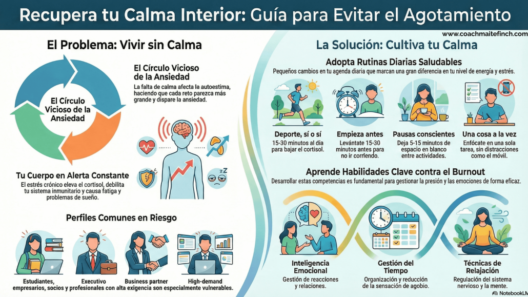 ¿Cómo vivir sin calma interior?. ¿Sabrías responderme a esta pregunta? 🙋‍♀️. La mayor parte de las personas con las que trabajo en las sesiones de coaching, y comunican su alto nivel de ansiedad, no tienen calma. Podría decir, a modo de resumen, que no eligen la calma entre sus prioridades. Es posible que te contraríe un poco esta idea. Y es la mejor manera de vivir sin calma interior.