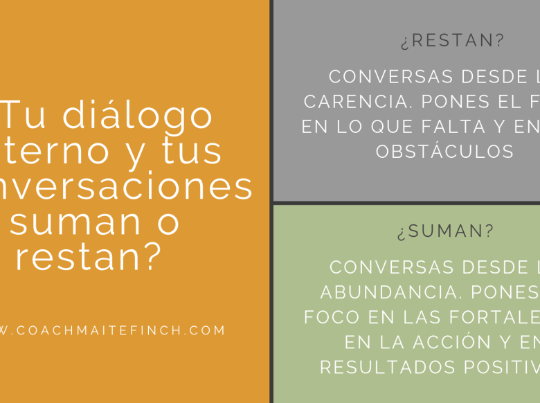 Sí, efectivamente. Tu diálogo y tu conversación puede sumar o restar. A ti mismo, y también a los demás. Parece que últimamente somos especialistas en poner nuestro foco de atención en lo negativo, en lo que falta, en lo que no es “correcto” o en los desastres que ocurren a diario. Desde hace un tiempo […] Seguir leyendo